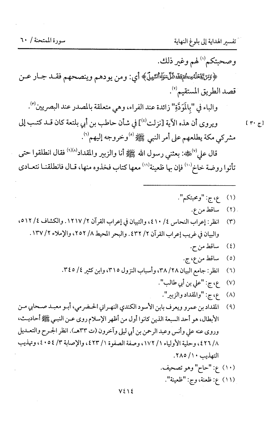 ويروى أن هذه الآية [نزلت] في شأن حاطب بن أبي بلتعة كان قد كتب إلى مشركي مكة يطلعهم على أمر النبي A وخروجه إليهم.
