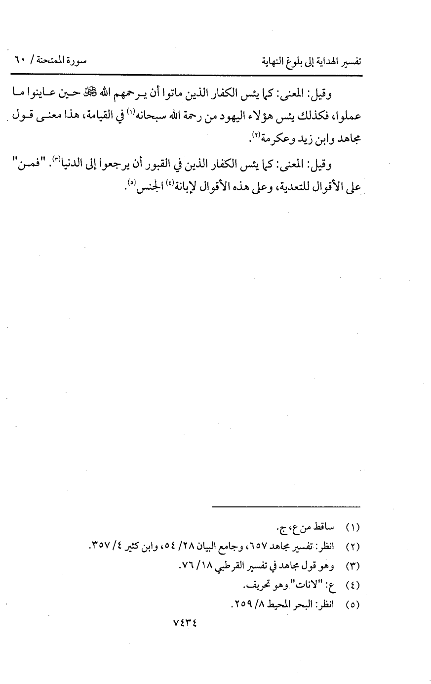 وقيل: المعنى: كما يئس الكفار الذين ماتوا أن يرحمهم الله D حين عاينوا ما عملوا، فكذلك يئس هؤلاء اليهود من رحمة الله سبحانه في القيامة، هذا معنى قول مجاهد وابن زيد وعكرمة.