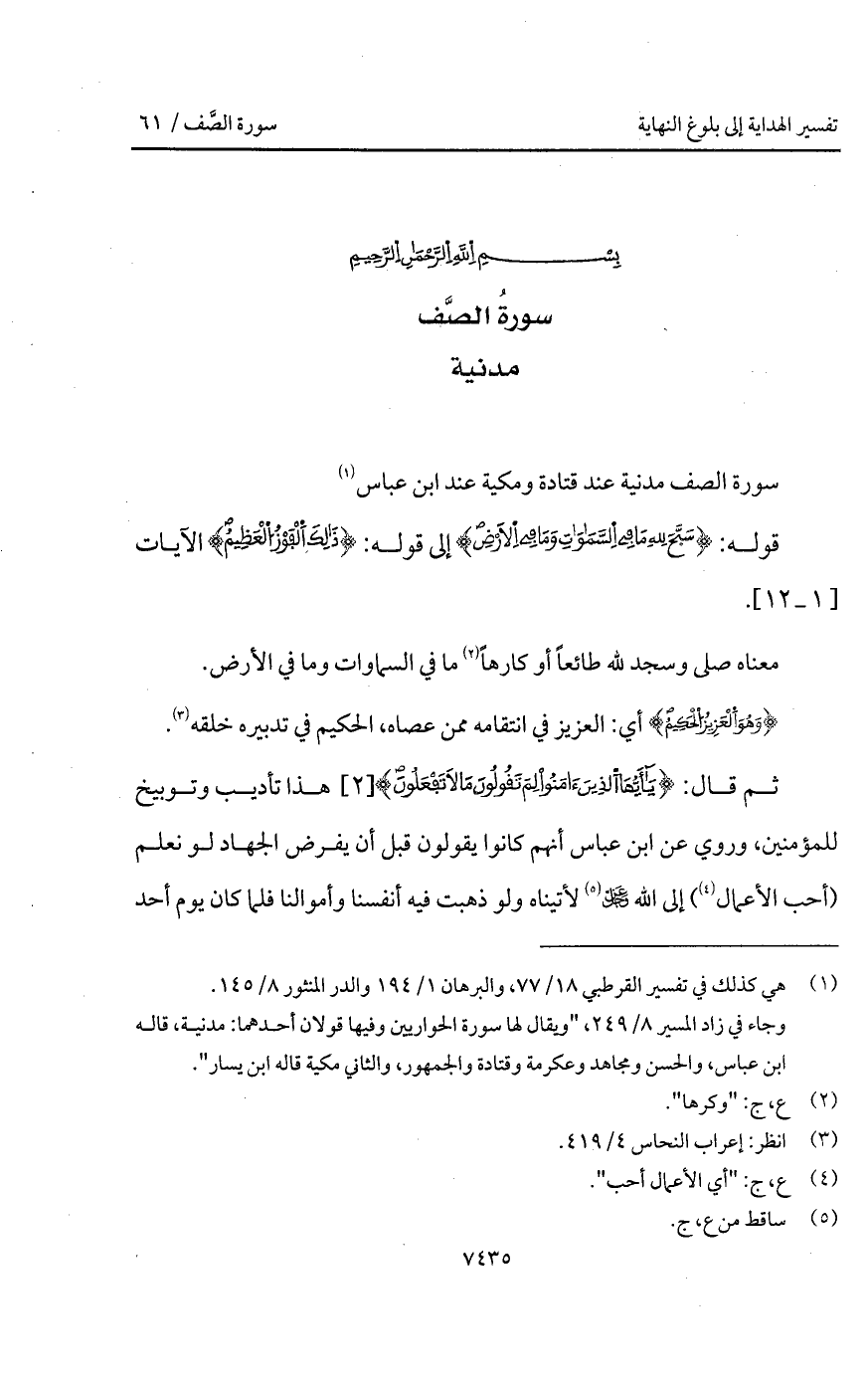 سورة الصف مدنية عند قتادة عند ابن عباس