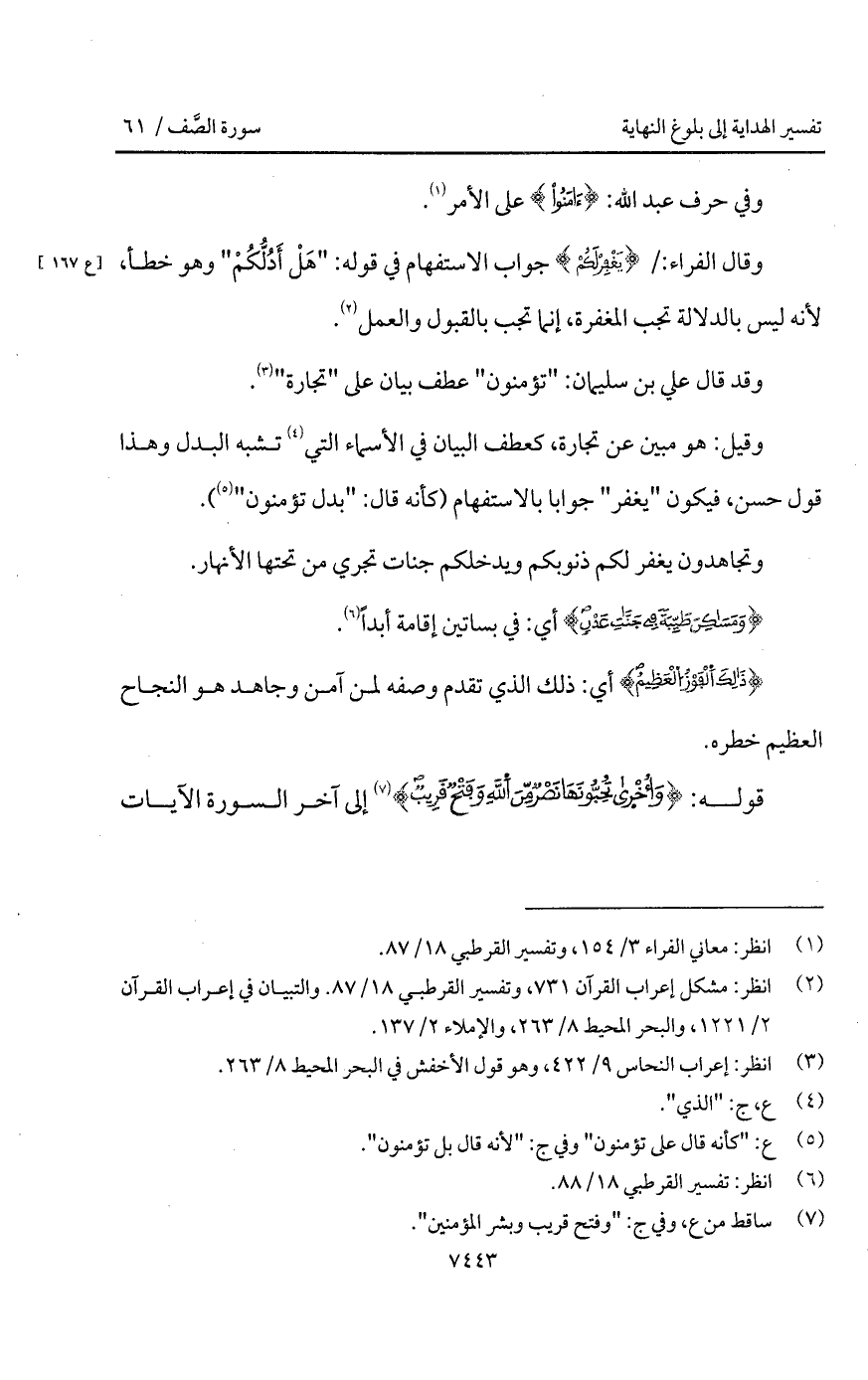 وقيل: هو مبين عن تجارة، كعطف البيان في الأسماء التي تشبه البدل وهذا قول حسن، فيكون " يغفر " جوابا بالاستفهام (كأنه قال: " بدل تؤمنون ").