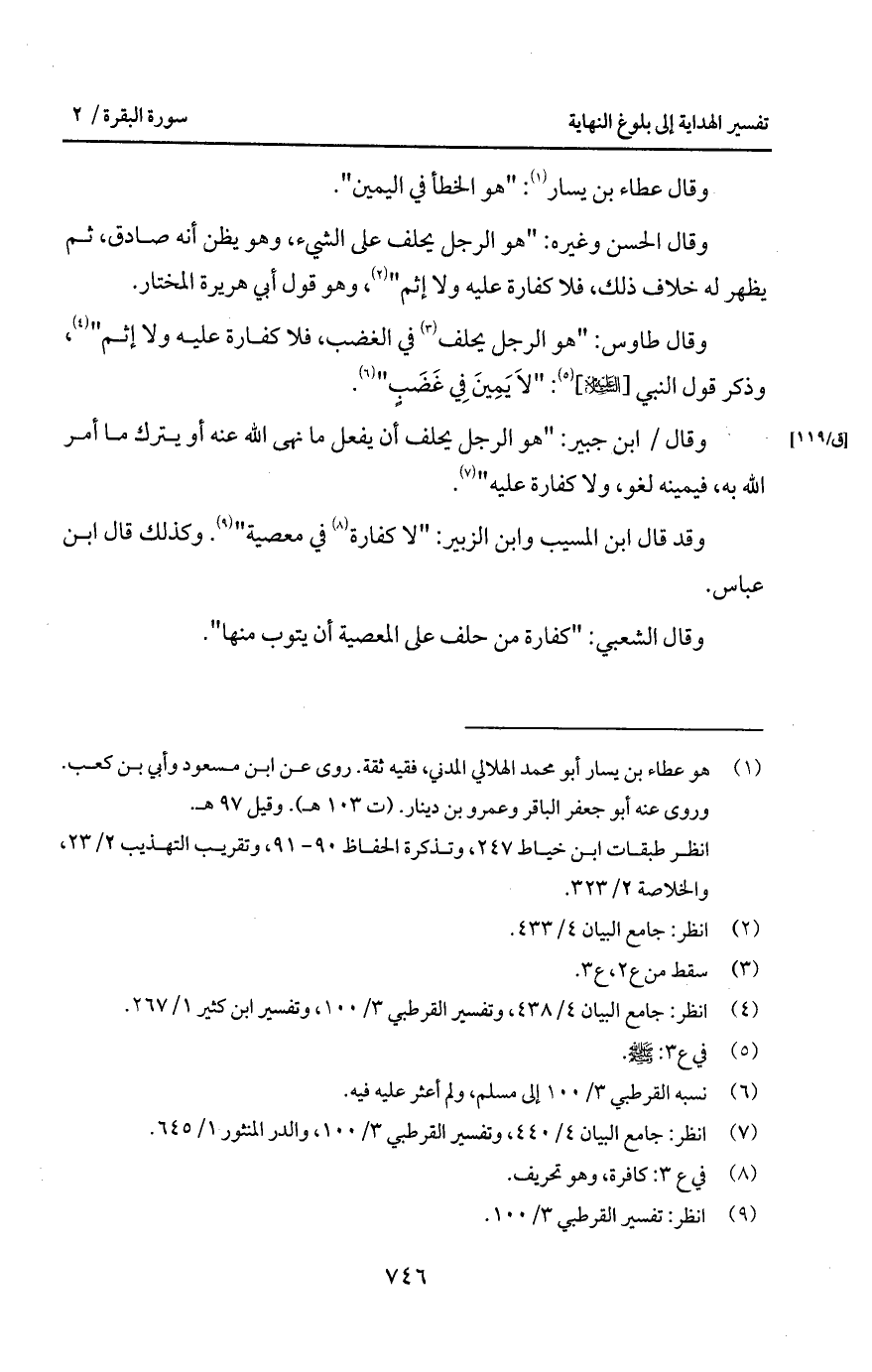 وقال: ابن جبير: " هو الرجل يحلف أن يعفعل ما نهى الله عنه أو يترك ما أمر الله به، فيمينه لغو، ولا كفارة عليه ".