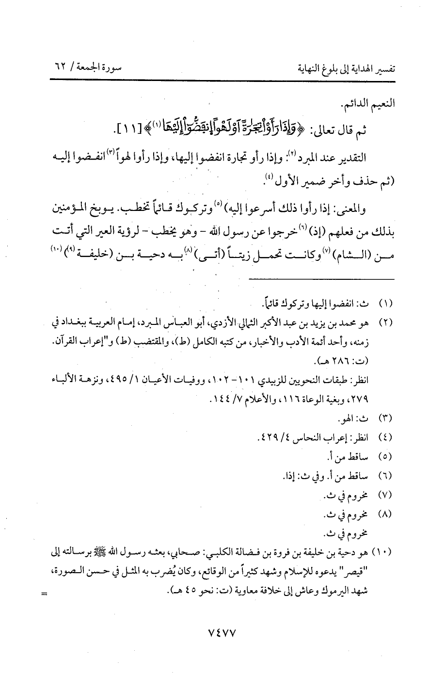 والمعنى: إذا رأوا ذلك أسرعوا إليه) وتركوك قائماً تخطب. يوبخ المؤمنين بذلك من فعلهم (إذ) خرجوا عن رسول الله - وهو يخطب - لرؤية العير التي أتت من (الشام) وكانت تحمل زيتاً (أتى) به دحي بن (خليفة)