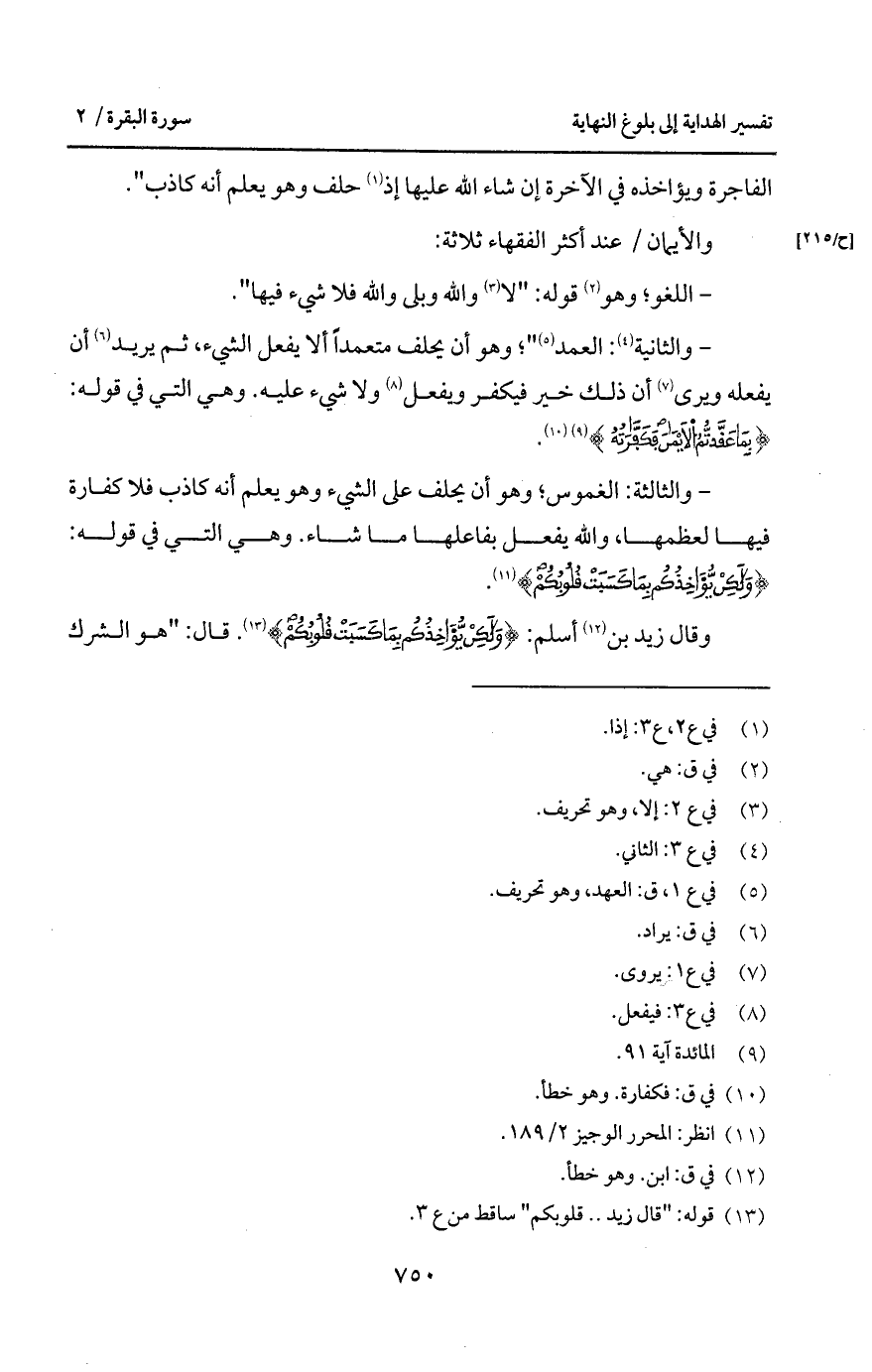 وقل زيد بن أسلم: {ولكن يُؤَاخِذُكُم بِمَا كَسَبَتْ قُلُوبُكُمْ}. قال: " هو الشرك