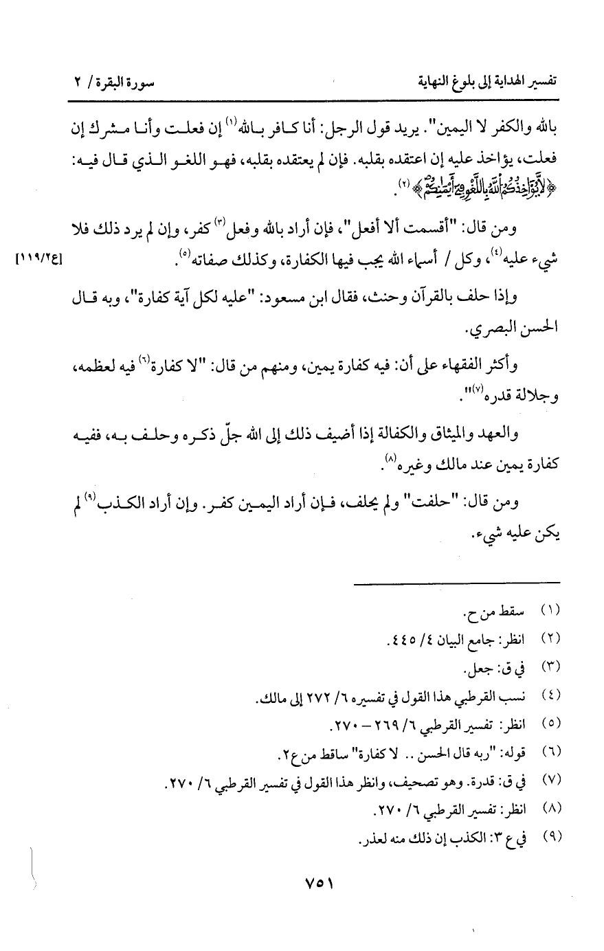 بالله والكفر لا اليمين ". يريد قول الرجل: أنا كافر بالله إن فعلت وأنا مشرك إن فعلت، يؤاخذ عليه إن اعتقده بقلبه. فإن لم يعتقده بقلبه، فهو اللغو الذي قال فيه: {لاَّ يُؤَاخِذُكُمُ الله باللغو في أَيْمَانِكُمْ}.