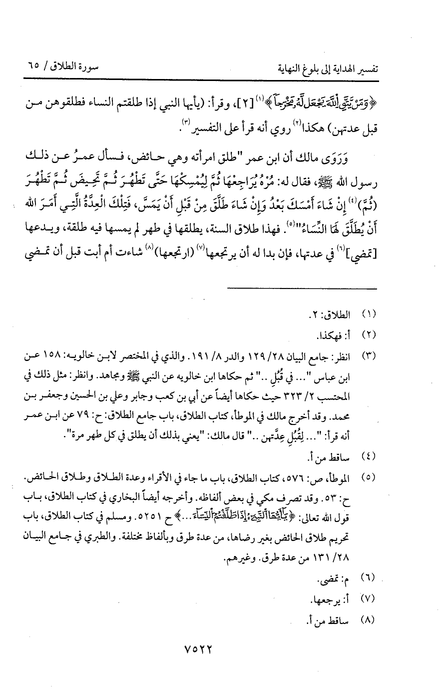 " وَرَوَى مالك أن ابن عمر " طلق امرأته وهي حائض، فسأل عمرُ عن ذلك رسول الله A فقال له: مُرْهُ يُرَاجِعْهَا ثُمَّ لِيُمْسِكْهَا حَتَّى تَطْهَرَ ثُمَّ تَحِيضَ ثُمَّ تَطْهَرَ (ثُمَّ) إِنْ شَاءَ أَمْسَكَ بَعْدٌ وَإِنْ شَاءَ طَلَّقَ مِنْ قَبْلِ أَنْ يَمَسَّ، فَتِلْكَ الْعِدَّةُ الَّتِي أَمَرَ الله أَنْ يُطَلَّقَ لَهَا النِّسَاءُ " فهذا طلاق السنة، يطلقها في طهر لم يسمها فيه طلقة، ويدعها [تمضي] في عدتها، فإن بدا له أن يرتجعها (أرتجعها) شاءت أم أبت قبل أن تمضي