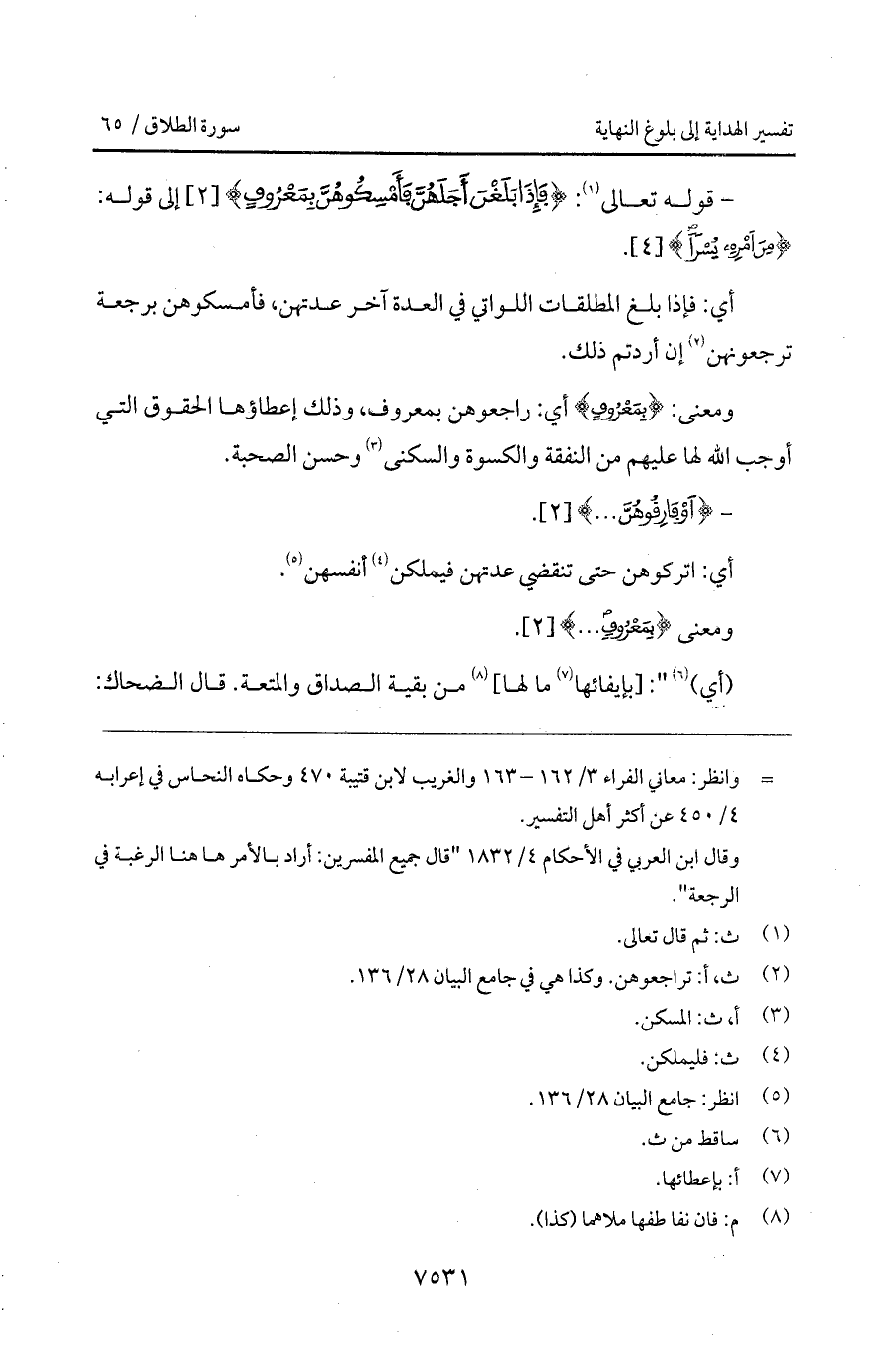 قوله تعالى: {فَإِذَا بَلَغْنَ أَجَلَهُنَّ فَأَمْسِكُوهُنَّ بِمَعْرُوفٍ} إلى قوله: {مِنْ أَمْرِهِ يُسْراً}.