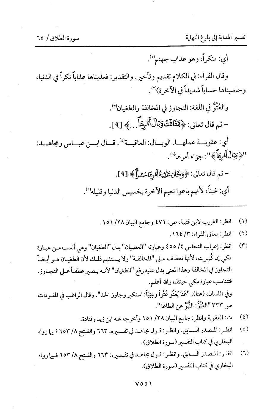 وقال الفراء: في الكلام تقديم وتأخير. والتقدير: فعذبناها عذاباً نكراً في الدنيا، وحاسبناها حساباً شديداً في الآخرة).
