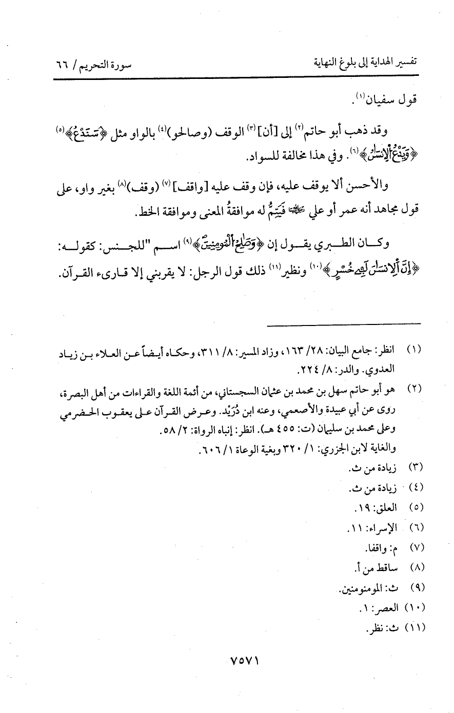 وقد ذهب أبو حاتم إلى [أن] الوقف (وصالحو) بالواو مثل {سَنَدْعُ} [العلق: 18] {وَيَدْعُ الإنسان} [الإسراء: 11]. وفي هذا مخالفة للسواد.