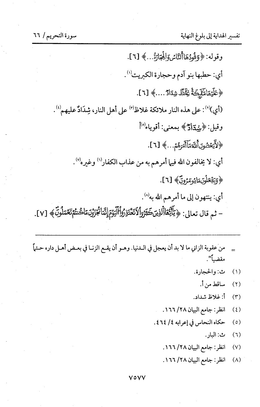 {عَلَيْهَا مَلاَئِكَةٌ غِلاَظٌ شِدَادٌ. . .}.