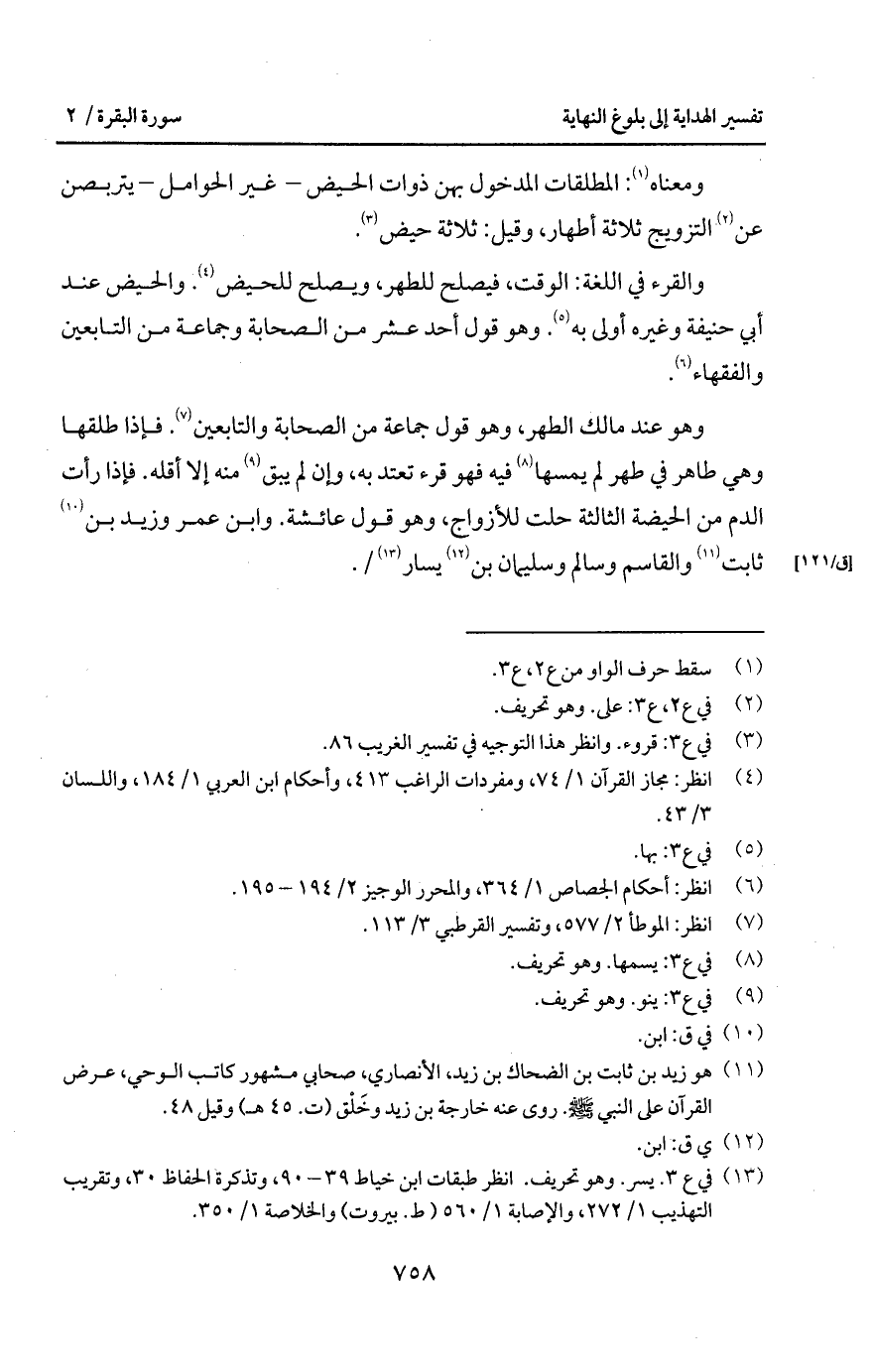 ومعناه: المطلقات المدخول بهن ذوات الحيض - غير الحوامل - يتربصن عن التزويج ثلاثة أطهار، وقيل: ثلاثة حيض.