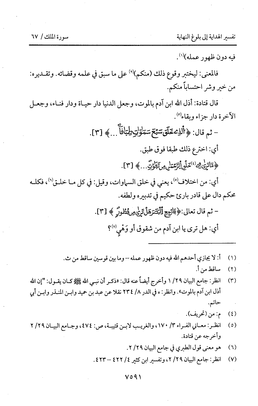 - ثم قال: {الذي خَلَقَ سَبْعَ سماوات طِبَاقاً. . .}.