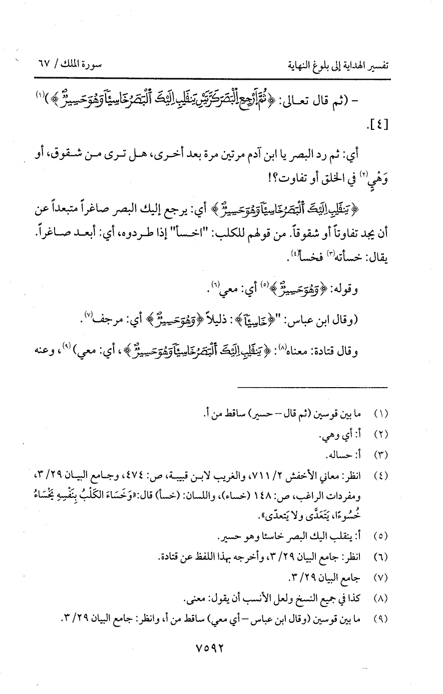 - (ثم قال تعالى: {ثُمَّ ارجِعِ البَصَرَ كَرَّتَيْنِ يَنْقَلِبْ إِلَيْكَ البَصَرُ خَاسِئاً وَهُوَ حَسِيرٌ}).