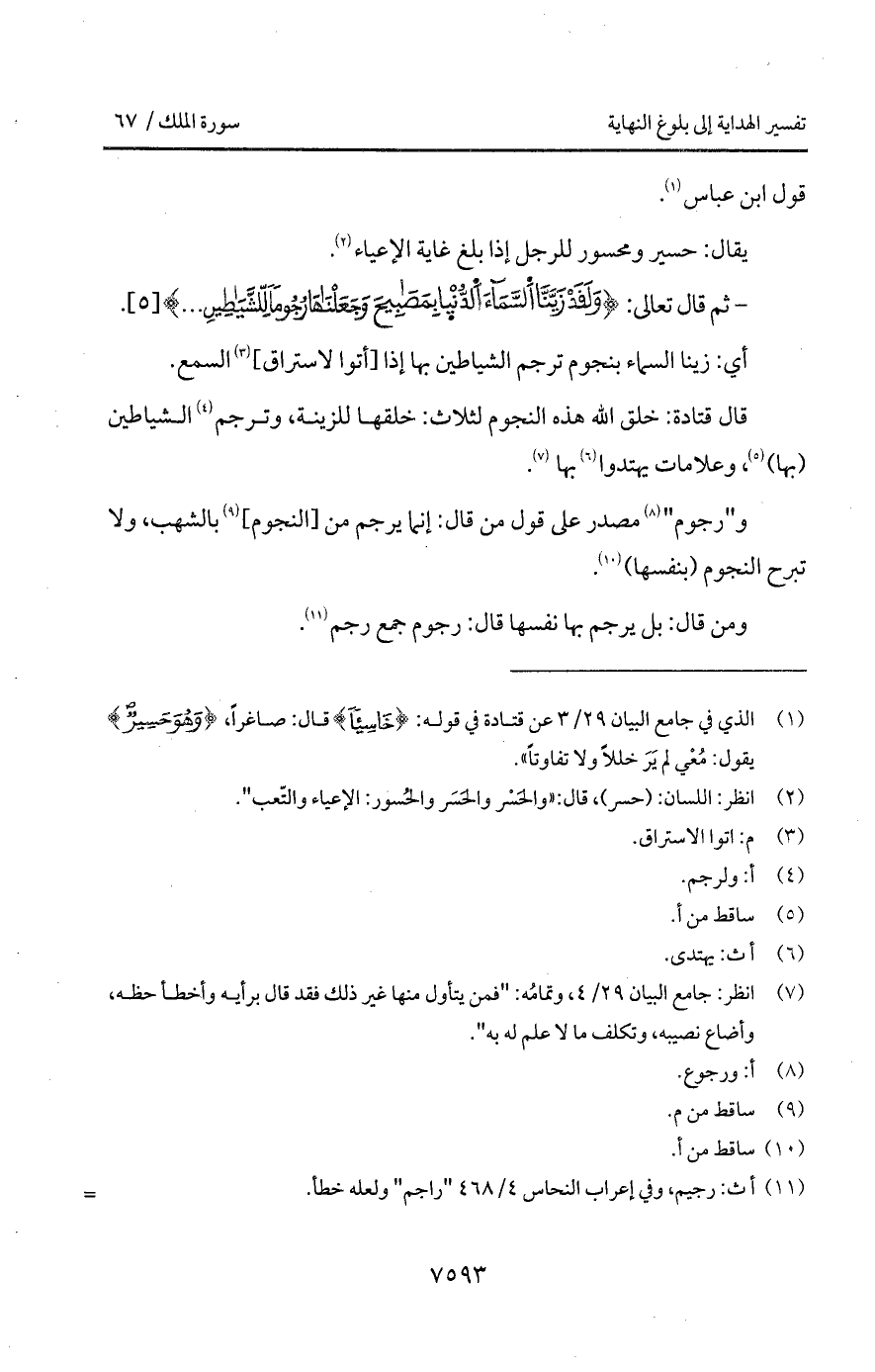 قال قتادة: خلق الله هذه النجوم لثلاث: خلقها للزينة، وترجم الشياطين (بها)، وعلامات يهتدوا بها.