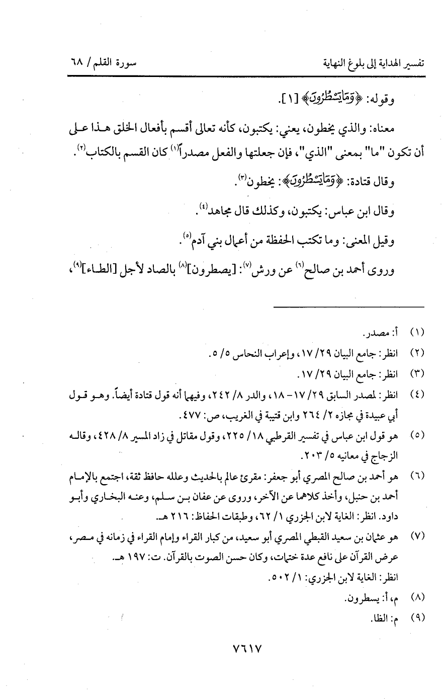 معناه: والذي يخطون، يعني يكتبون، كأنه تعالى أقسم بأفعال الخلق هذا على أن تكون " ما " بمعنى " الذي "، فإن جعلتها والفعل مصدراً كان القسم بالكتاب.