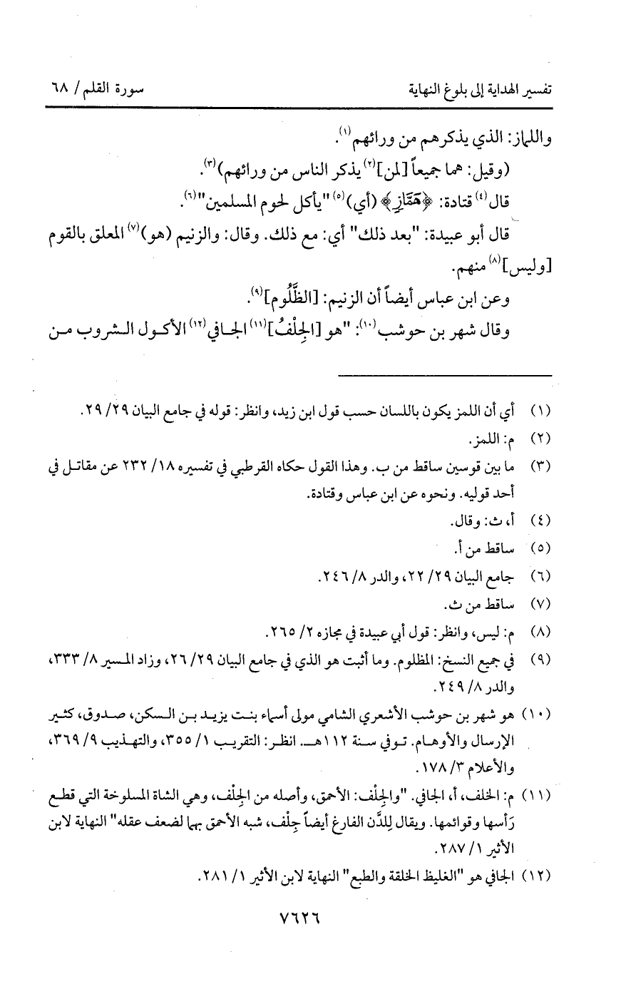 قال أبو عبيد: " بعد ذلك " أي: مع ذلك. وقال: والزنيم (هو) المعلق بالقوم [وليس] منهم.