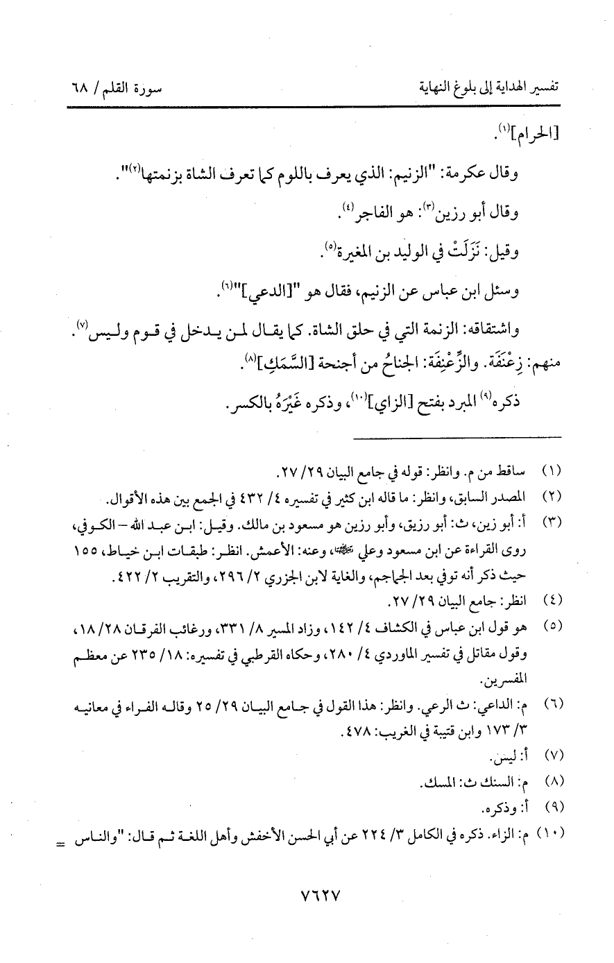 وقال عكرمة: " الزنيم: الذي يعرف باللوم كما تعرف الشاة بزنمتها.