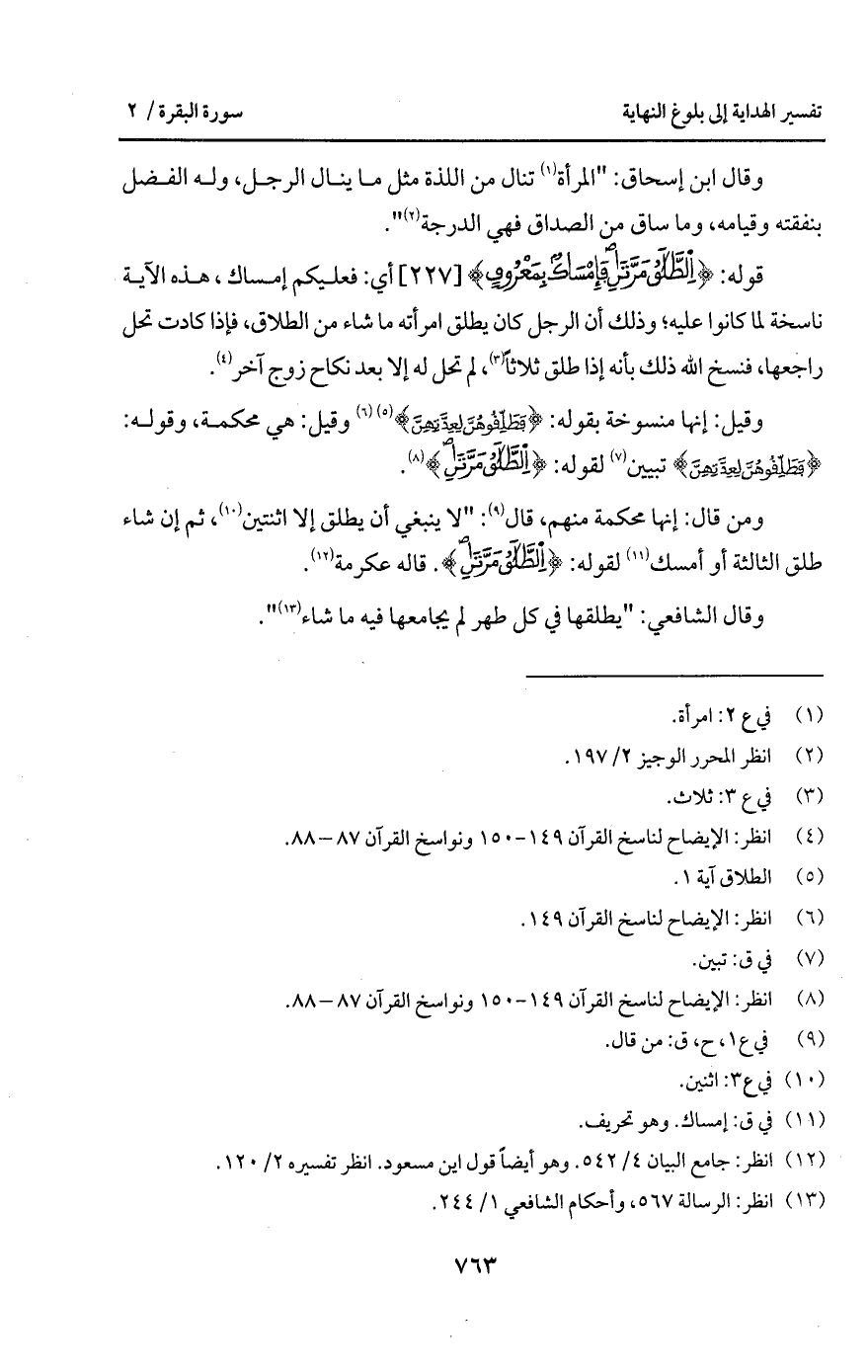 وقيل: إنها منسوخة بقوله: {فَطَلِّقُوهُنَّ لِعِدَّتِهِنَّ} [الطلاق: 1] وقيل: هي محكمة، وقوله: {فَطَلِّقُوهُنَّ لِعِدَّتِهِنَّ} تبيين لقوله: {الطلاق مَرَّتَانِ}.