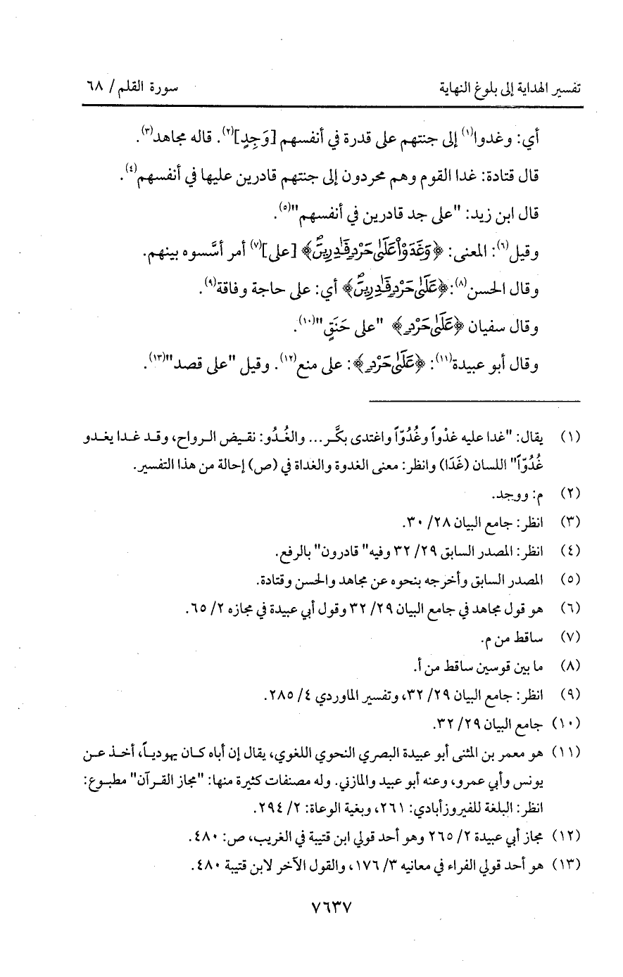 وقال أبو عبيدة: {على حَرْدٍ}: على منع. وقيل " على قصد ".