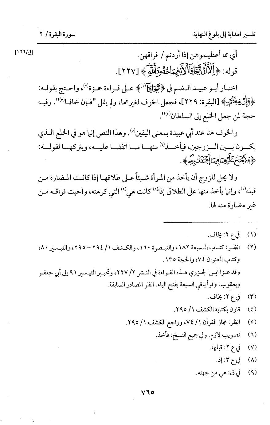 والخوف هنا عند إبي عبيدة بمعنى اليقين. وهذا النص إنما هو في الخلع الذي يكون بين الزوجين، فيأخذ منها ما اتفقا عليه، ويتركها لقوله: {فَلاَ جُنَاحَ عَلَيْهِمَا فِيمَا افتدت بِهِ}.
