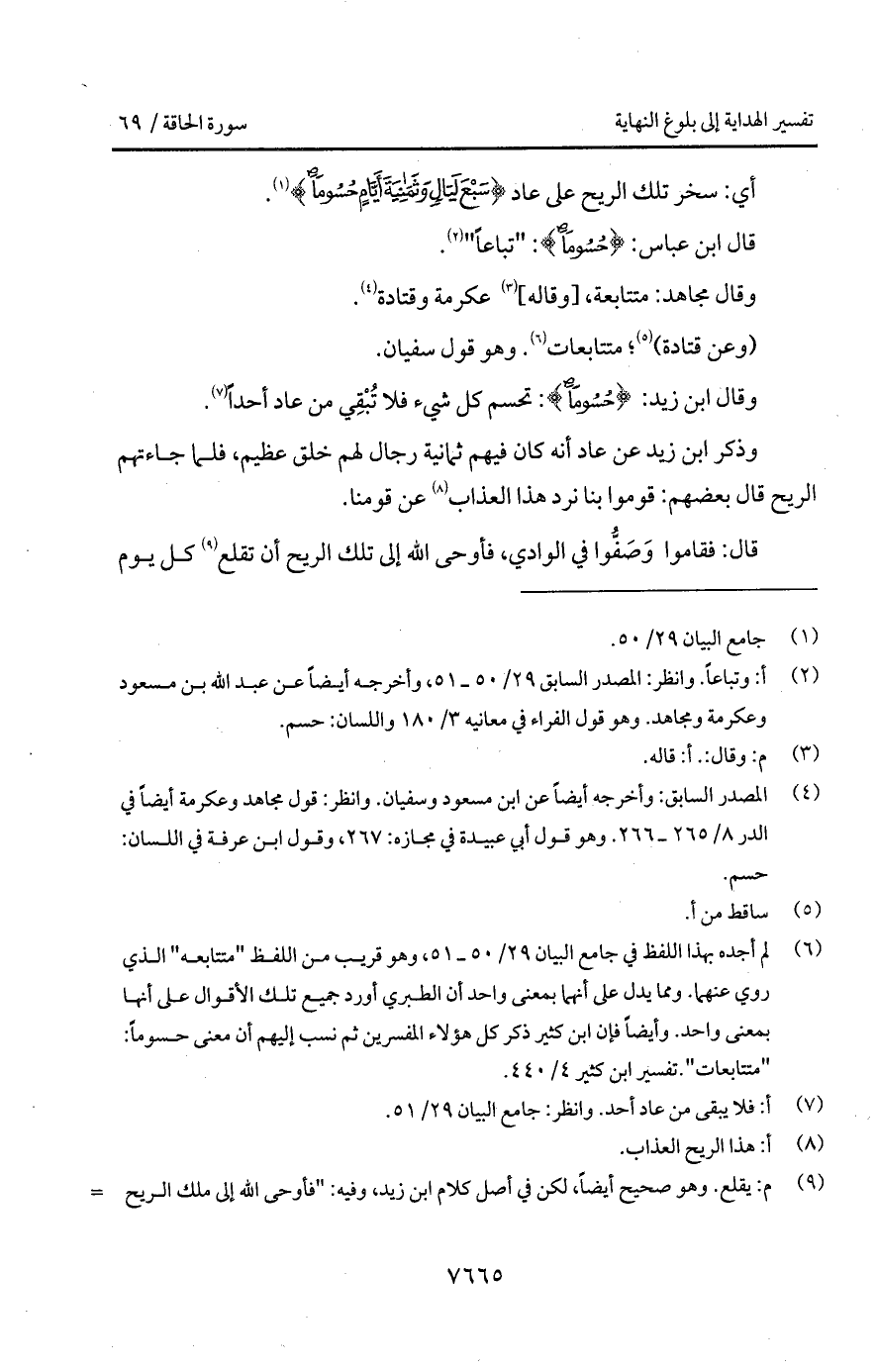 قال ابن عباس: {حُسُوماً}: " تباعاً ".
