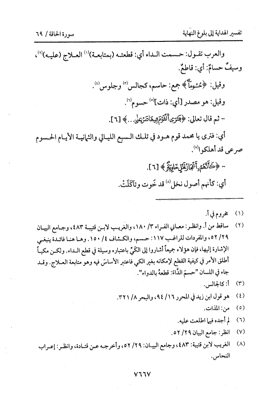 والعرب تقول: حسمت الداء أي: قطعته (بمتابعة) العلاج (عليه)، وسيفٌ حسامٌ: أي: قاطعٌ.