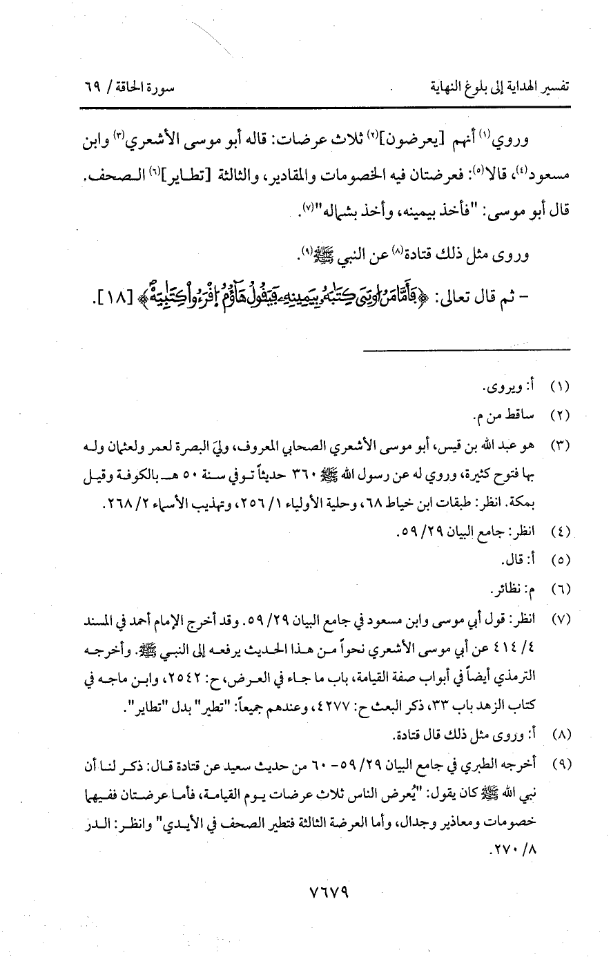 وروي أنهم [يعرضون] ثلاث عرضات: قاله أبو موسى الأشعري وابن مسعود، قالا: فعرضتان فيه الخصومات والمقادير، والثالثة [تطاير] الصحف. قال أبو موسى: " فأخذ بيمينه، وأخذ بشماله ".