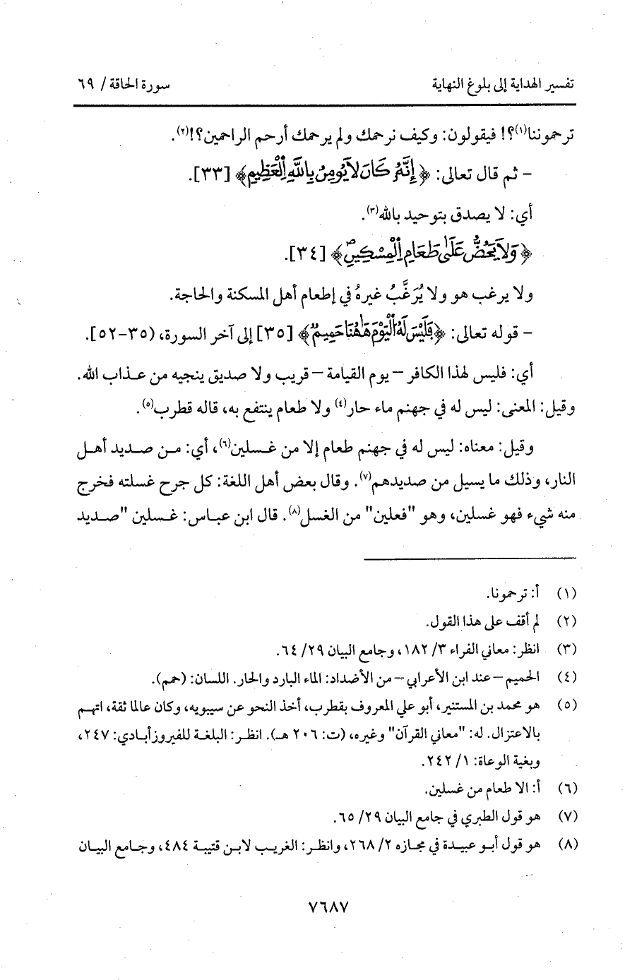 - قوله تعالى: {فَلَيْسَ لَهُ اليوم هَا هُنَا حَمِيمٌ} إلى آخرة السورة.