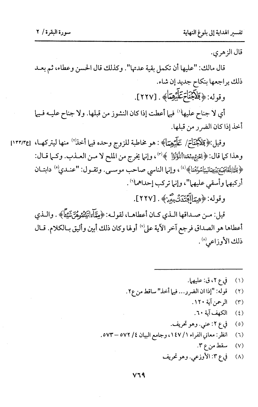 وقيل: {فَلاَ جُنَاحَ/ عَلَيْهِمَا}: هو مخاطبة للزوج وحده فيما أخذ منها ليتركها، وهذا كما قال: {يَخْرُجُ مِنْهُمَا الُّلؤْلُؤُ} [الرحمن: 22]، وإنما يخرج من الملح لا من العذب. وكما قال: {فَلَمَّا بَلَغَا مَجْمَعَ بَيْنِهِمَا نَسِيَا حُوتَهُمَا} [الكهف: 61]، وإنما الناسي صاحب موسى. وتقول: " عندي دابتان أركبهما وأسقي عليهما "، وإنما تركب إحداهما.