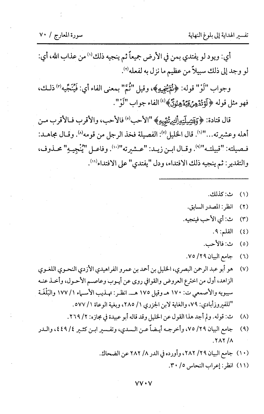 . . ". قال الخليل: الفصيلة فخذ الرجل من قو مه. وقال مجاهد: فصيلته: " قبيلته ". وقال ابن زيد: " عشريته ". وفاعل " يُنْجِيهِ " محذوف، والتقدير: ثم ينجيه ذلك الافتداء، ودل " يفتدي " على الافتداء.