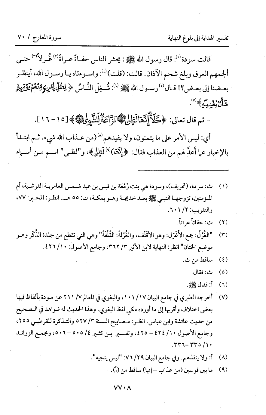 - ثم قال تعالى: {كَلاَّ إِنَّهَا لظى * نَزَّاعَةً للشوى}.