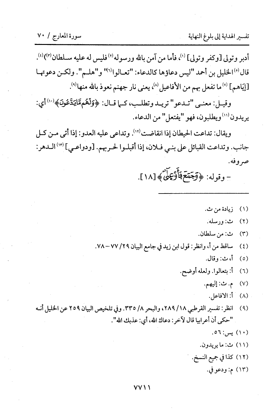 قال الخليل بن أحمد " ليس دعاؤها كالدعاء: " تعالوا " و " هلم ". ولكن دعوتها [إيّاهم] ما تفعل بهم من الأفاعيل، يعنى نار جهنم نعوذ بالله منها.