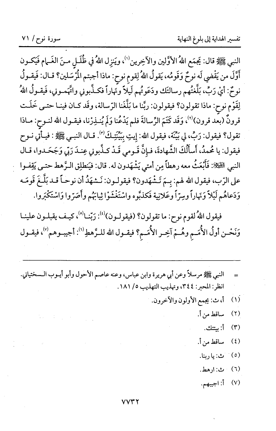 فيقول اللهُ لقوم نوح: ما تقولون؟ (فيقولون): رَبّنا، كيف يقبلون علينا وَنَحْن أولُ الأُمَمِ وهُمْ آخِر الأُمَمِ؟ فيقول الله للرَّهطِ: أجيبوهم، فيقول