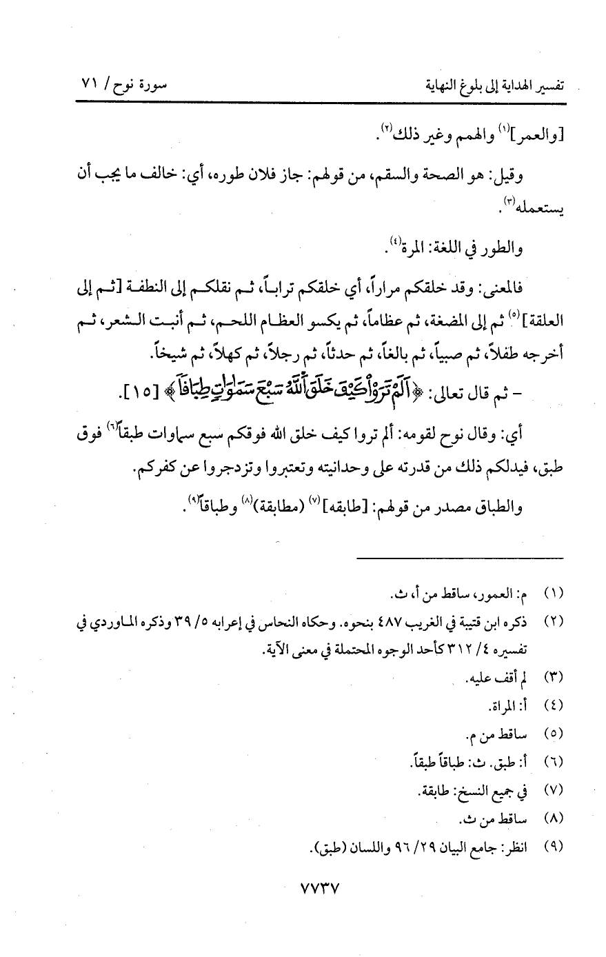 - ثم قال تعالى: {أَلَمْ تَرَوْاْ كَيْفَ خَلَقَ الله سَبْعَ سماوات طِبَاقاً}.