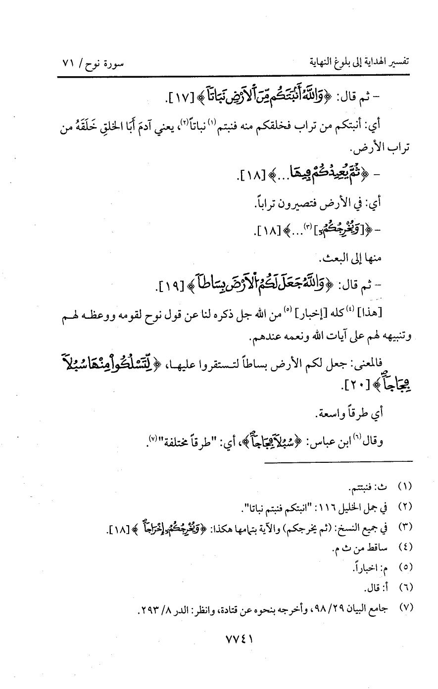 وقال ابن عباس: {سُبُلاً فِجَاجاً}، أي: " طرقاً مختلفة ".