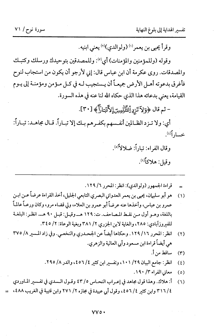 - ثم قال: {وَلاَ تَزِدِ الظالمين إِلاَّ تَبَاراً}.