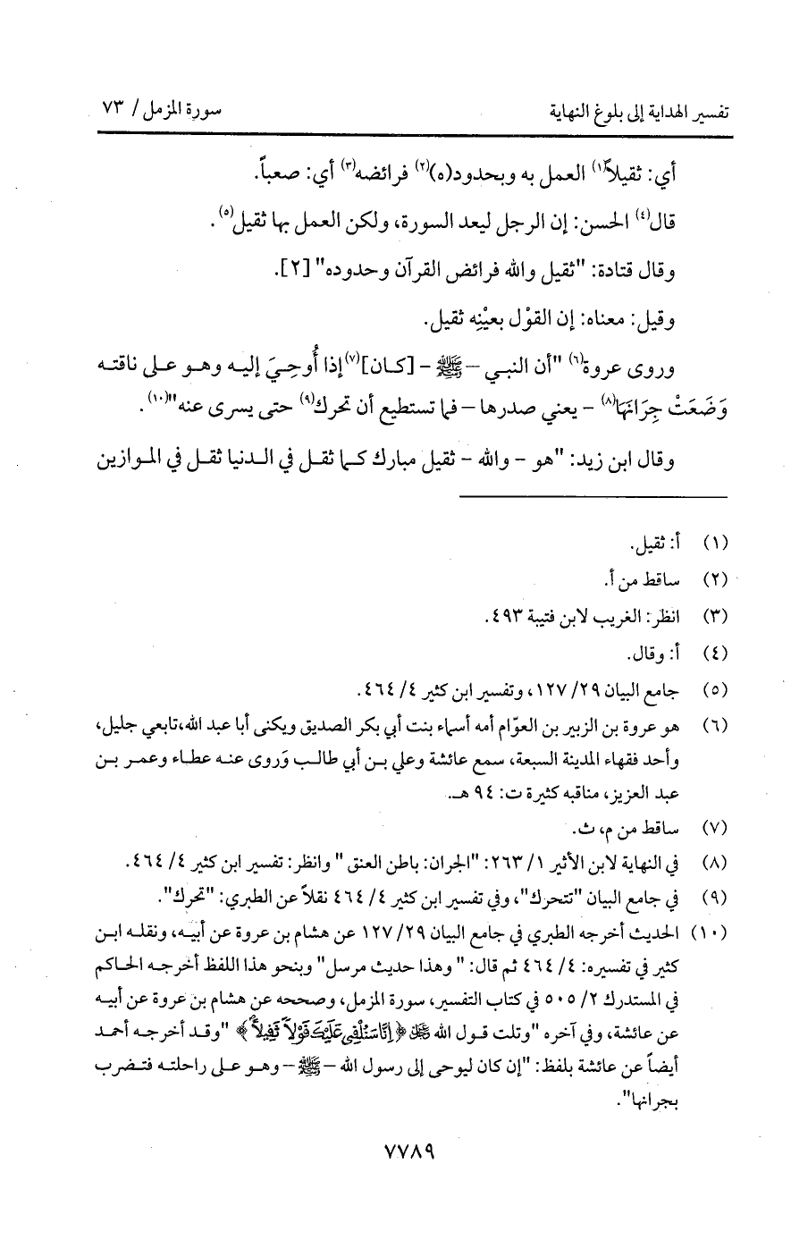 وروى عروة " أن النبي - A -[ كان] إذا أُوحِيَ إليه وهو على ناقته وَضَعَتْ جِرَانَهَا - يعني صدرها - فما تستطيع أن تحرك حتى يسرى عنه ".