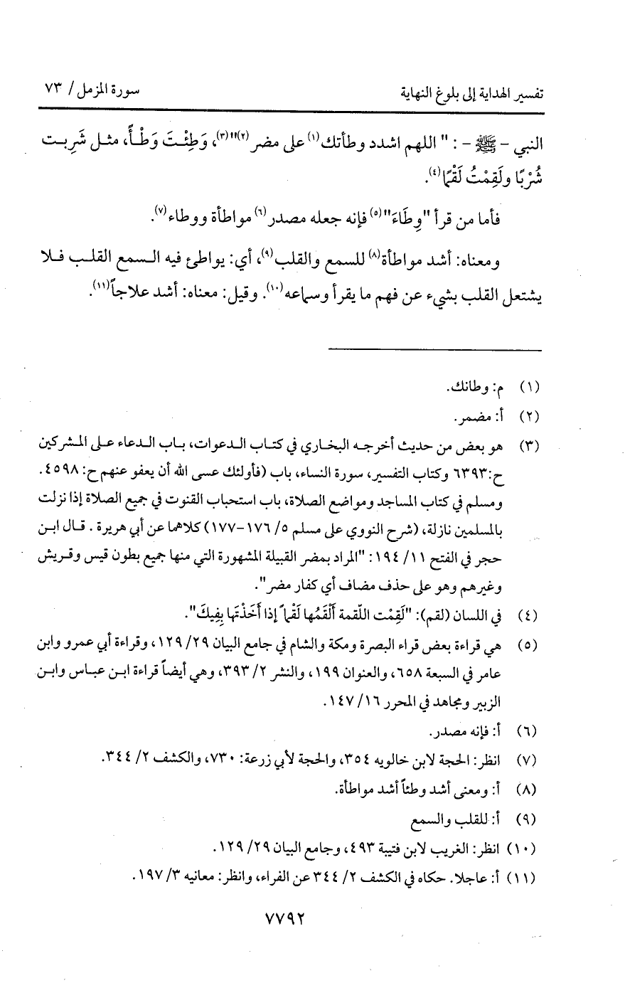 ومعناه: أشد مواطأة للسمع والقلب، أي: يواطئ فيه السمع القلب فلا يشتغل القلب بشيء عنم فهم ما يقرأ وسماعه. وقيل: معناه: أشد علاجاً.