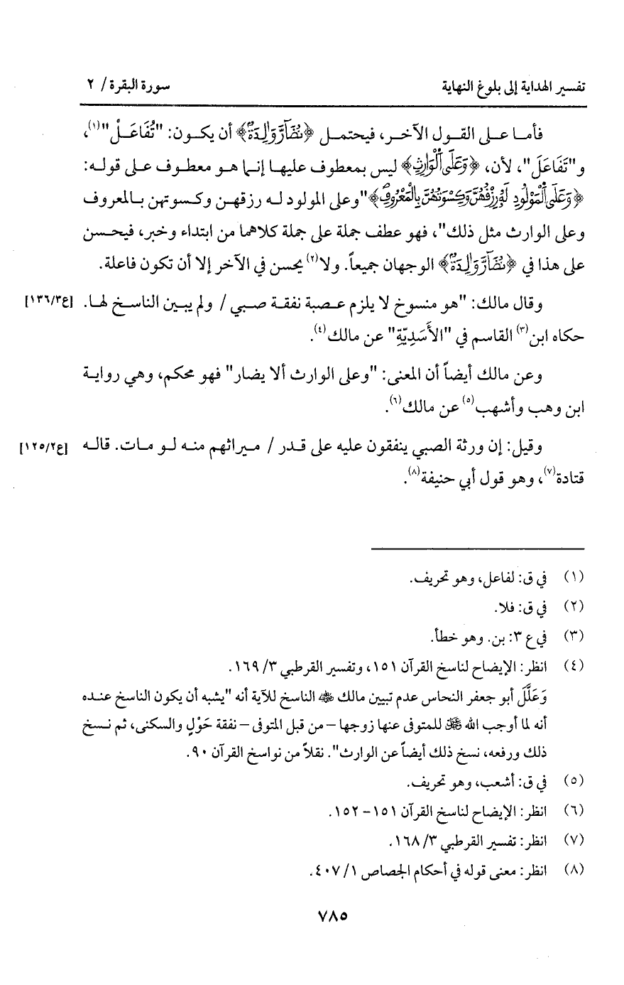وعن مالك أيضاً أن المعنى: " وعلى الوارث ألا يضار " فهو محكم، وهي رواية ابن وهب وأشهب عن مالك.