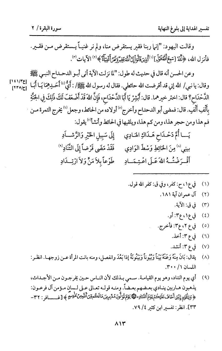 وعن الحسن أنه قال في حديث له طول: " لما نزلت الآية أتى أبو الدحداح النبي A وقال: يا نبي/ الله إني قد أقرضت الله حائطي. فقال له رسول الله A /: أَيُّ أَحَدِهِمَا يَا أَبَا الدَّحْدَاحِ؟ قال: اختر خيرهما. قال: أَبْشِرْ يَا أَبَا الدَّحْدَاحِ، فَإِتنَّ اللهَ قَدْ أَضْعَفَ لَكَ ذَلِكَ فِي الجَنَّةِ بِأَلْفِ أَلْفٍ. قال: فمضى أبو الدحداح وأخرج أولاده من الحائط وجعل يخرج التمرة من فم هذا ومن حجر هذا، ومن كم هذا، ويلقيها في الحائط وأنشأ يقول: "