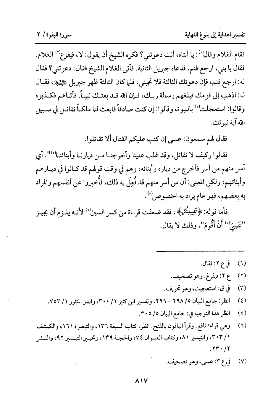 فأما قوله: {عَسَيْتُمْ}، فقد ضعف قراءة من كسر السين لأنه يلزم أن يجيز " عَسِيَ أَنْ أَقُومَ "، وذلك لا يقال.