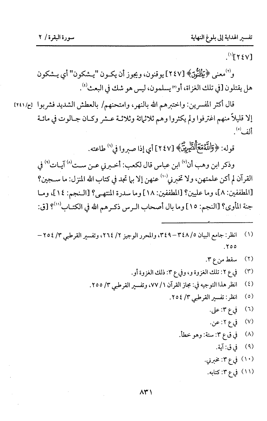 وذكر ابن وهب أن ابن عباس قال لكعب: أخبرني عن ست آيات في القرآن لم أكن علمتهن، ولا تخبرني عنهم إلا بما تجد في كتاب الله المنزل: ما سجين؟ [المطففين: 8] وما عليين؟ [المطففين: 18] وما سدرة المنتهى؟ [النجم: 14]، وما جنة المأوى؟ [النجم: 15] وما بال أصحاب الرس ذكرهم الله في الكتاب؟ [ق: 12]