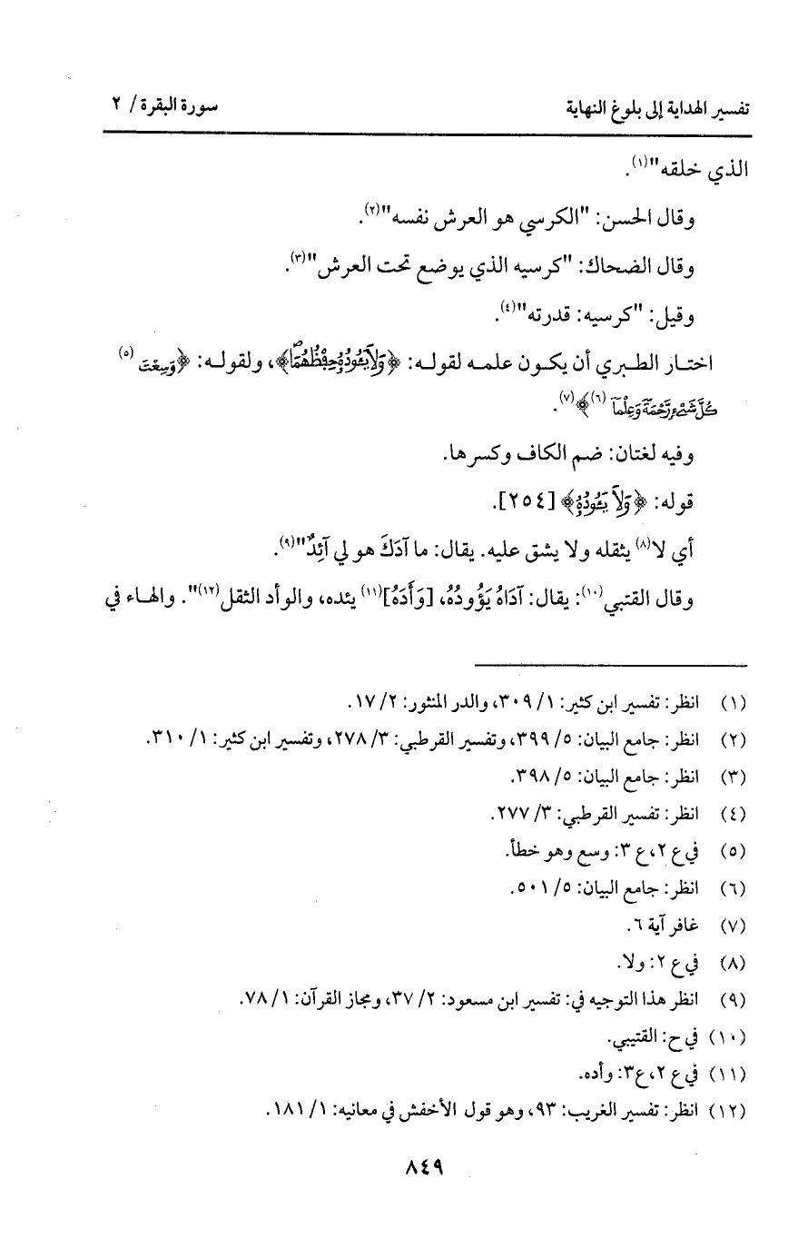 اختار الطبري أن يكون علمه لقوله: {وَلاَ يَؤُودُهُ حِفْظُهُمَا}، ولقوله: {وَسِعْتَ كُلَّ شَيْءٍ رَّحْمَةً وَعِلْماً} [غافر: 7].