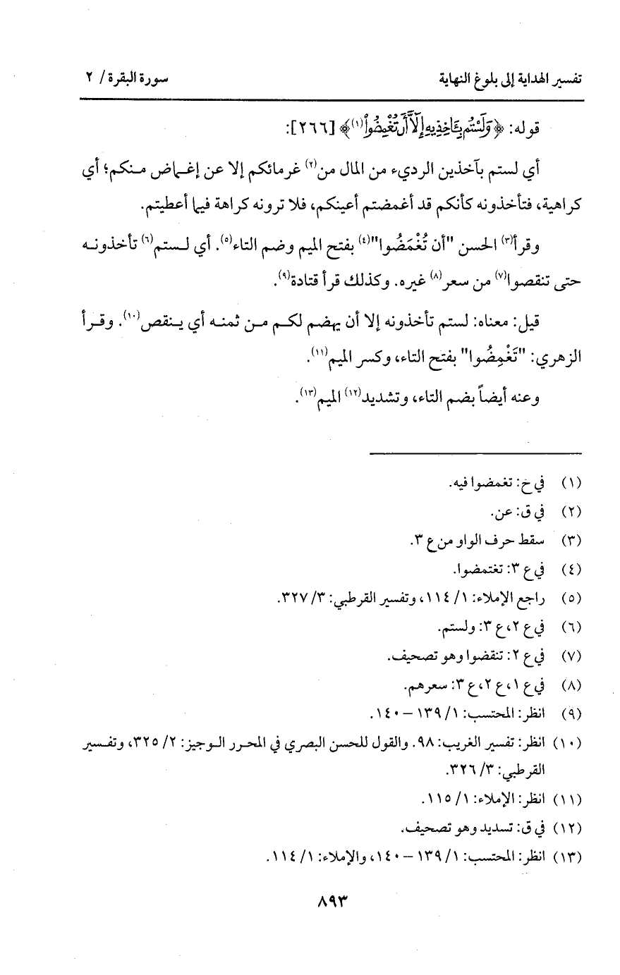 وقرأ الحسن " أن تُغْمَضُوا " بفتح الميم وضم التاء. أي لستم تأخذونه حتى تنقصوا من سعر غيره. وكذلك قرأ قتادة.