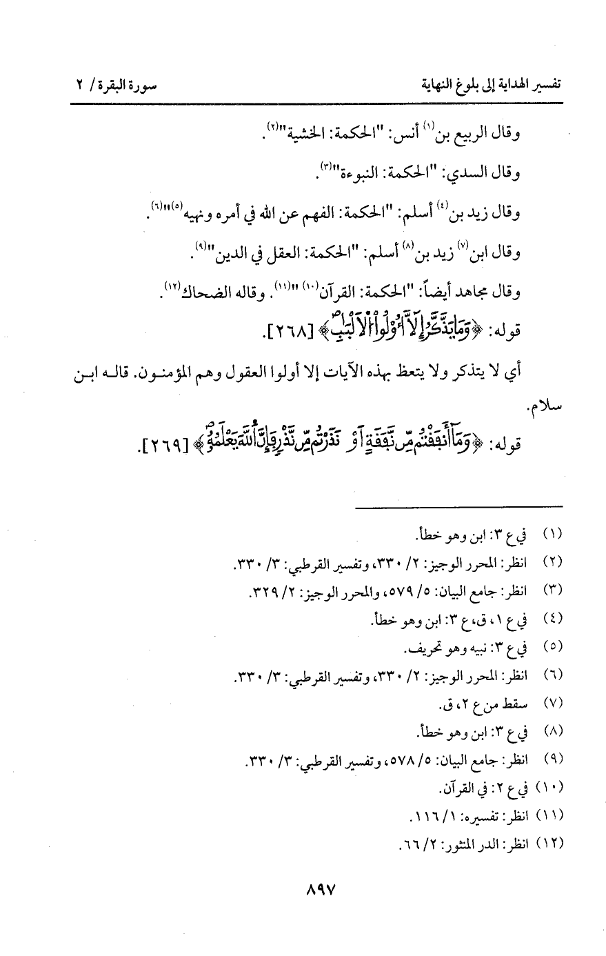وقال زيد بن أسلم: " الحكمة: الفهم عن الله في أمره ونهيه ".