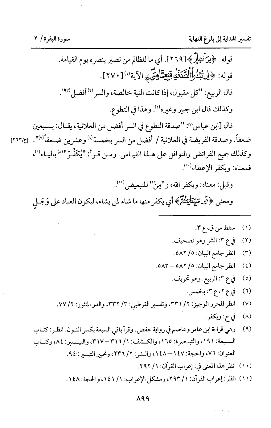 قال [ابن عباس: " صدقة التطوع في السر أفضل من العلانية، يقال: بسبعين ضعفاً. وصدقة الفريضة في العلانية/ أفضل من السر بخمسة وعشرين ضعفاً ".