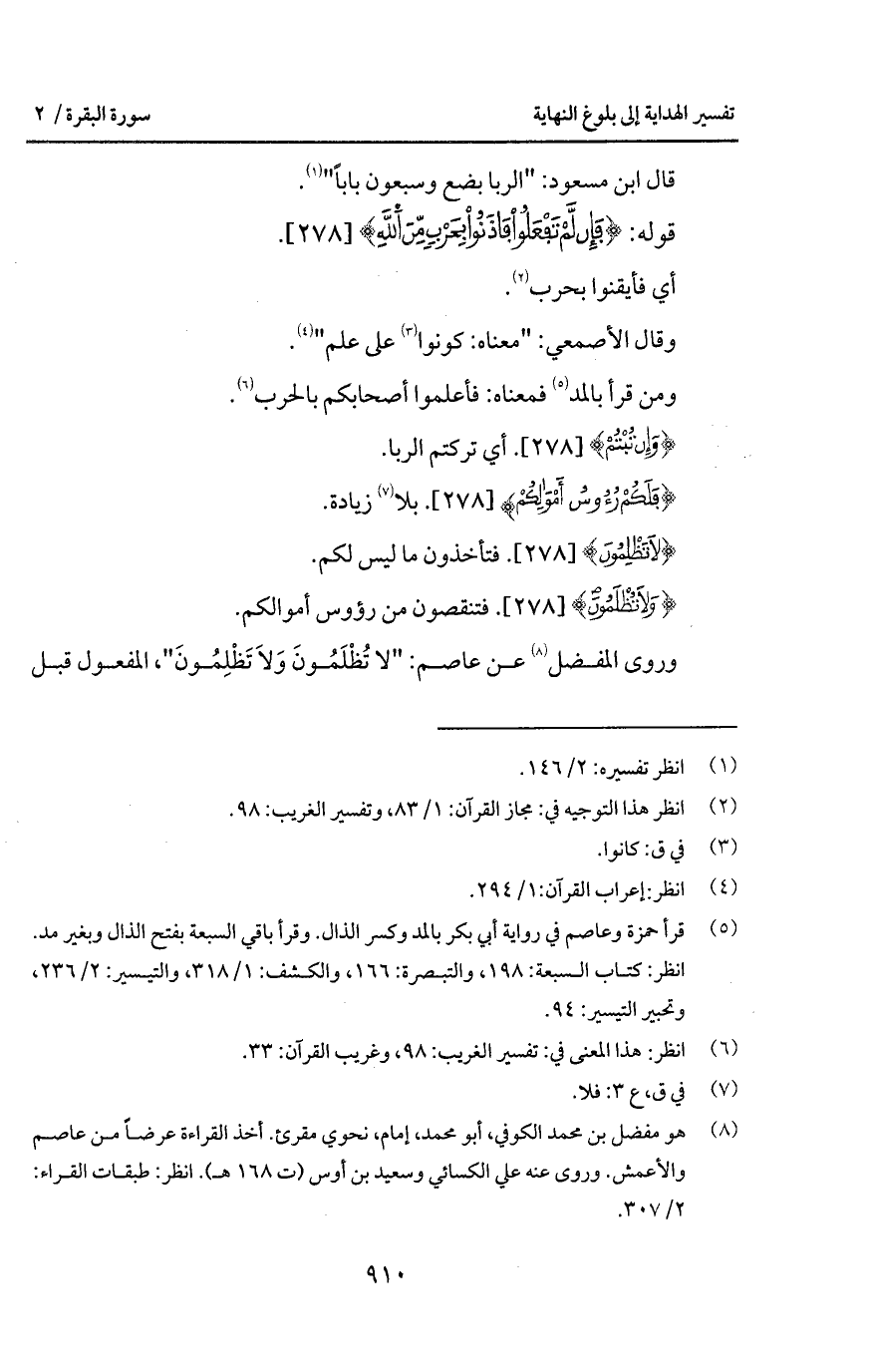 وروى المفضل عن عاصم: " لا تُظْلَمُونَ وَلاَتَظْلِمُونَ "، المفعول قبل