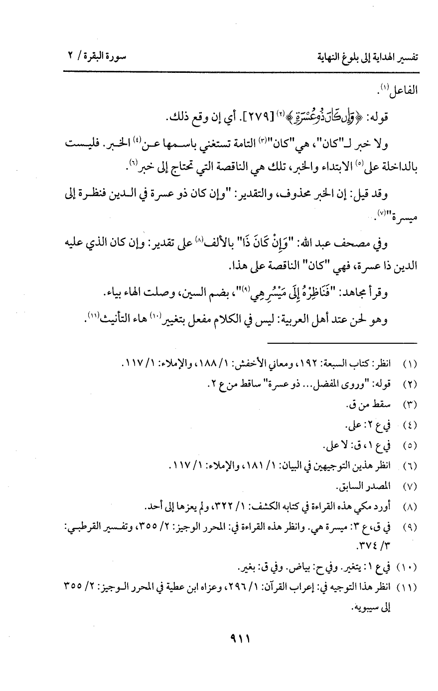 وفي مصحف عبد الله: " وَإِنْ كَانَ ذَا " بالألف على تقدير: وإن كان الذي عليه الدين ذا عسرة، فهي " كان " الناقصة على هذا.