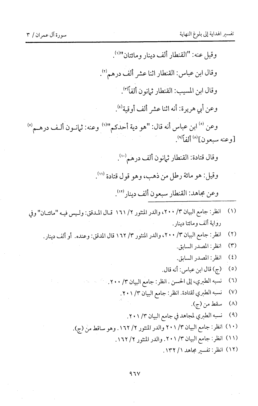 وقيل عنه: " القنطار ألف دينار ومائتان ".
