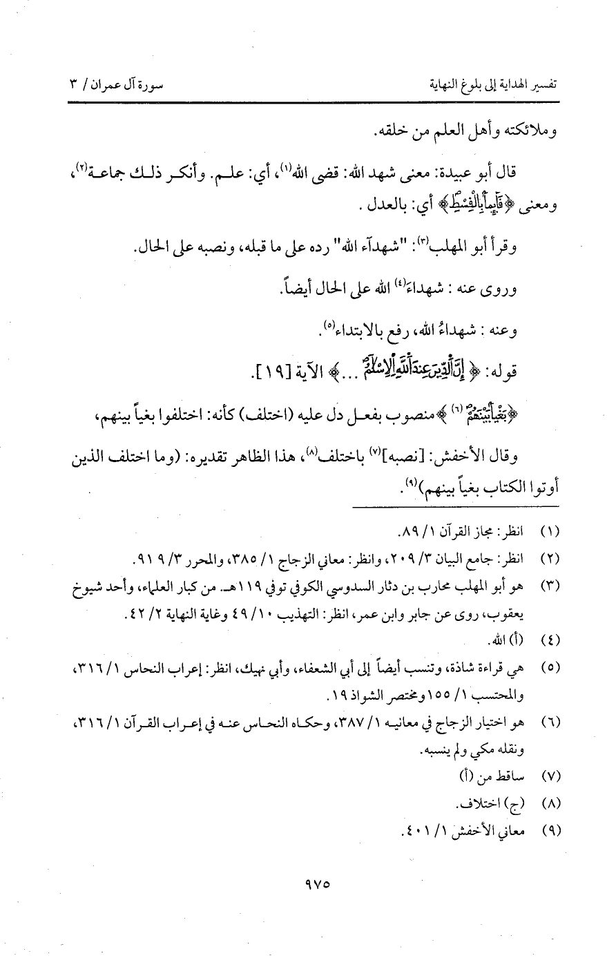 قال أبو عبيدة: معنى شهد الله: قضى الله، أي: علم. وأنكر ذلك جماعة، ومعنى {قَآئِمَاً بالقسط} أي: بالعدل.