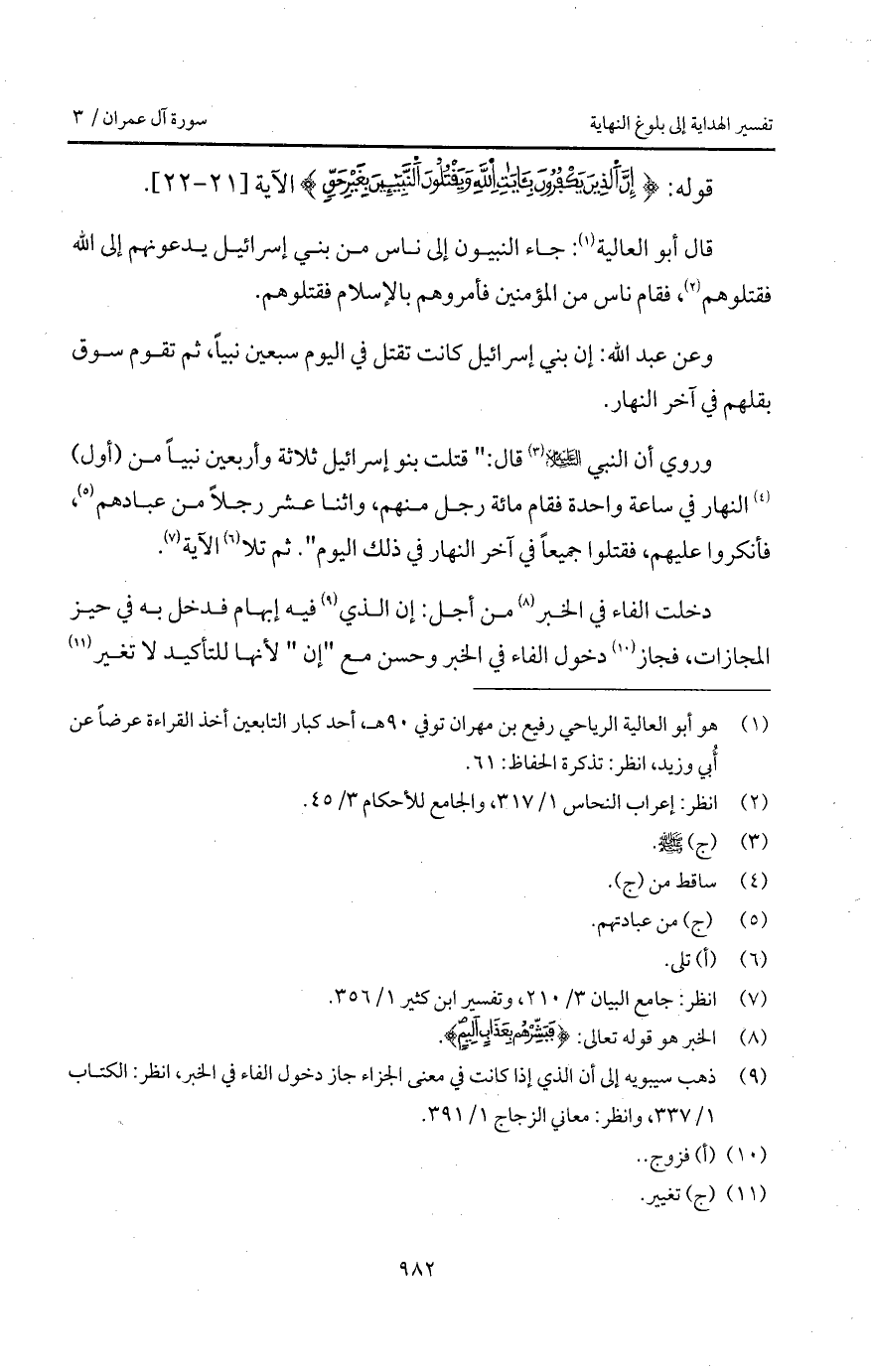 وروي أن النبي عليه السلام قال: " قتلت بنو إسرائيل ثلاثة وأربعين نبياً من (أول) النهار في ساعة واحدة فقام مائة رجل منهم، واثنا عشر رجلاً من عبادهم، فأنكروا عليهم، فقتلوا جميعاً في آخر النهار في ذلك اليوم " ثم تلا الآية.